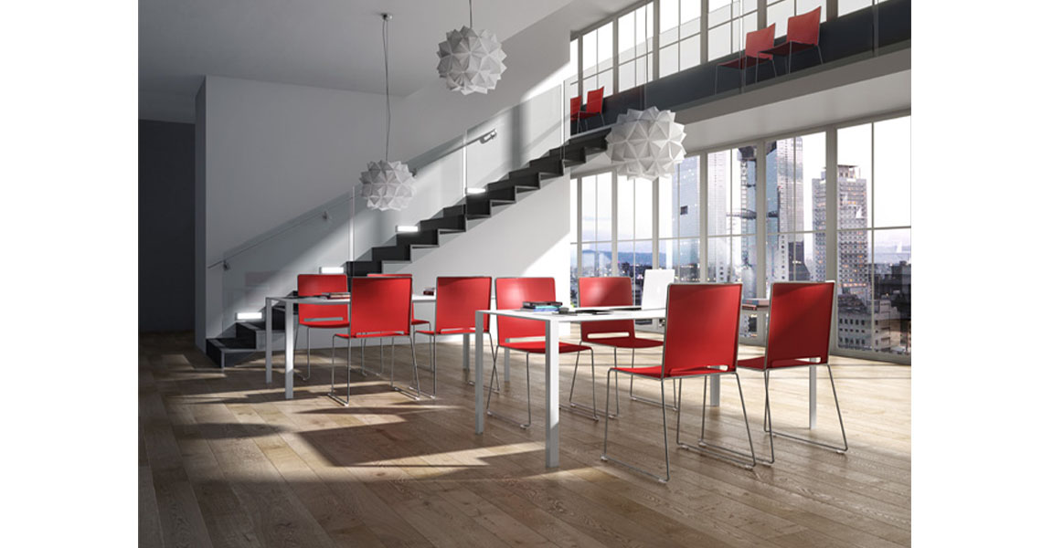 Breakroom and restaurant seating help increase the hospitality of any atmosphere. Four legs armchairs for shop cafe' can enhance the quality of every worker's down time, whether dining in a lunch break room or grabbing a quick cup of coffee. Employee kitchen seating is essential for workplaces because it allows workers to relax throughout the work day. Cafe' furnishings offer an appealing look for an employee kitchen and create a lunchroom where people can talk, eat and prepare to be productive. Modern multipurpose chairs and armchairs for restaurants and cafe' shops offer stylish seating for all your multifunction rooms and break rooms. From training room chairs and nesting chairs, break room chairs and office bar stools, Leyform has the ergonomic design solutions to meet your needs. Mix and match our modern multipurpose chairs for restaurants and lunchrooms to create an innovative, comfortable environment with stylish seating for everyone.