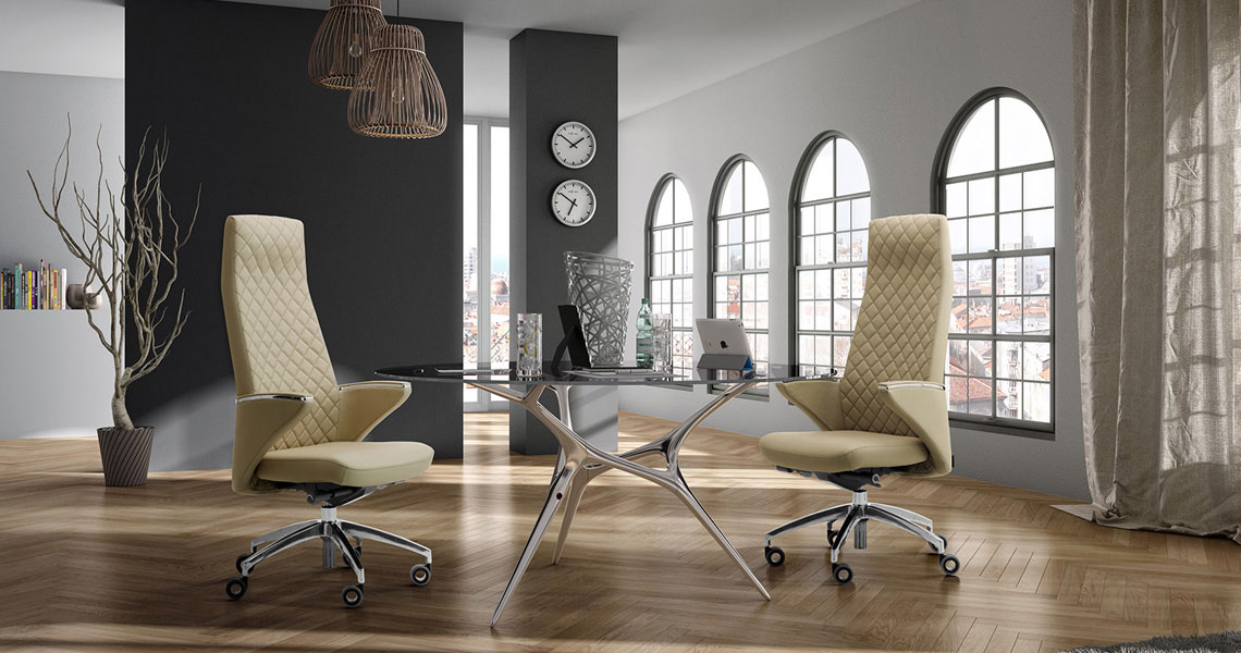- Chairs and armchairs for executive offices and professional studios, with a light design and the aim of conveying an image of authority and responsibility but with style and elegance